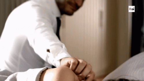 Lino Guanciale gently wakes Alessandra Mastronardi in bed, a sweet morning moment from the Italian series Lallieva.