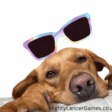 A cool brown dog wearing stylish sunglasses, relaxing as the word 'cool' appears on screen.