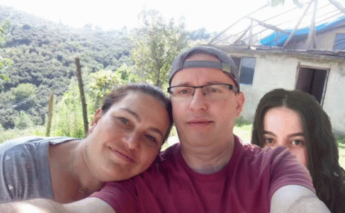 A man, his wife, and daughter capture a funny family selfie, with the daughter playfully photobombing the shot.