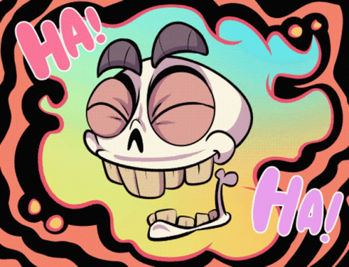 Wdwilly's cartoon skeleton laughs hysterically with 'HA!' exclamations, a truly funny moment.