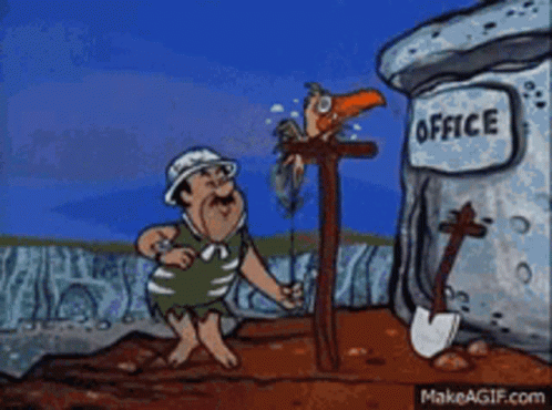 A funny Flintstones character laughing, followed by a cute donkey relaxing in a hammock.