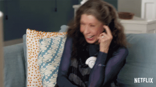 Lily Tomlin, as Frankie Bergstein, shares a hearty laugh on the couch in Grace and Frankie.