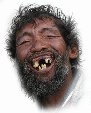 Bearded man with no teeth laughing heartily and smiling.