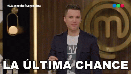 Santiago Del Moro presents "La Última Chance" on MasterChef Argentina, standing before the iconic logo.
