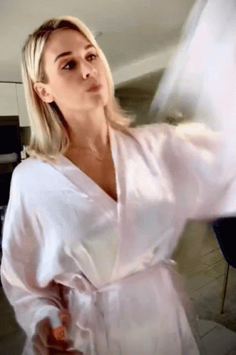 Lauren Compton transforms from a white robe into a stunning Harley Quinn costume, showcasing her playful energy.