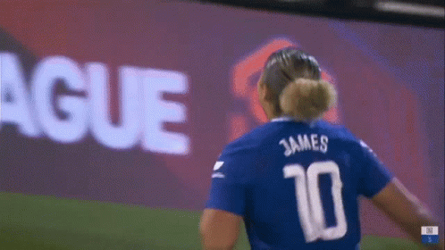 Lauren James, wearing number 10 for Chelsea Women, celebrates a goal with her teammates on the field.