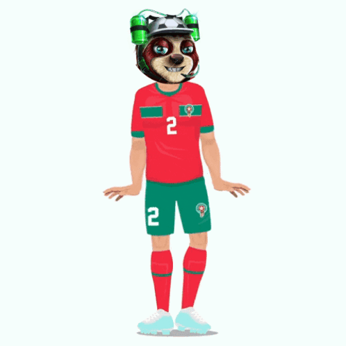 Lazy Sloth character in Moroccan soccer jersey with number 2 and headset, ready for football management.