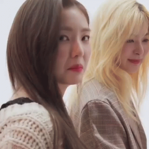 Irene makes a funny face while Seulgi smiles beside her, captured in a playful moment.