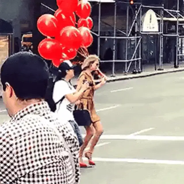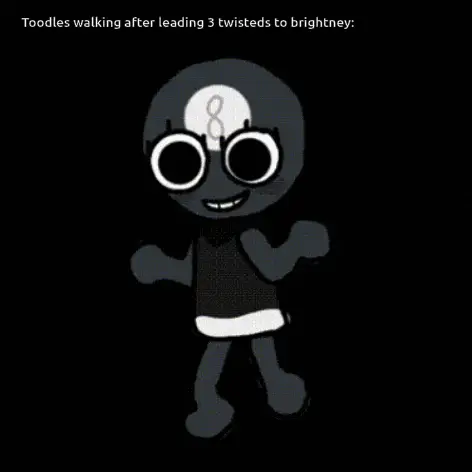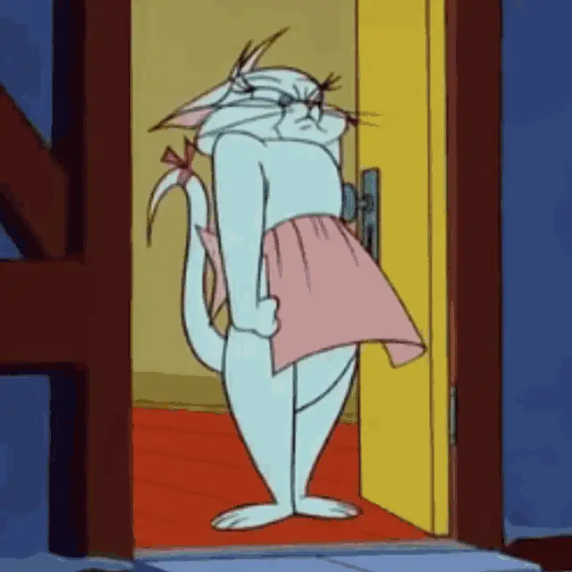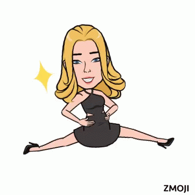 Toodles, a cartoon character, performs a full split in a black halter-neck dress and high heels.