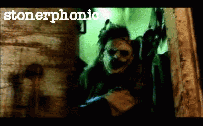 Stonerphonic poster featuring a clown in a dark room, associated with Leatherface.