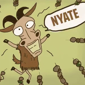 A happy cartoon goat jumps with joy, surrounded by satay skewers, celebrating Lebaran Haji (Eid al-Adha).
