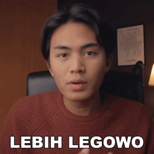 Zahid Azmi Ibrahim expresses 'Lebih Legowo' (more accepting), wearing a red sweater and conveying sincerity.