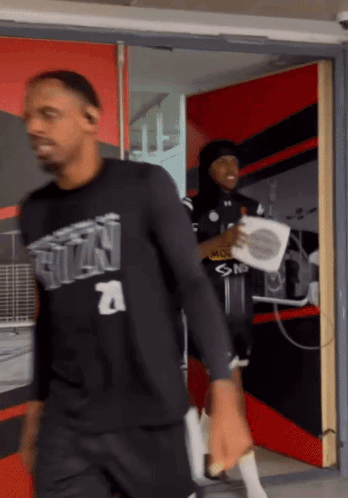 Basketball player Zach Leday of Partizan enters a locker room carrying a small white heater.
