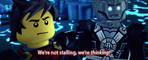 Lego Ninjago character Kai states, 'We're not stalling, we're thinking!'