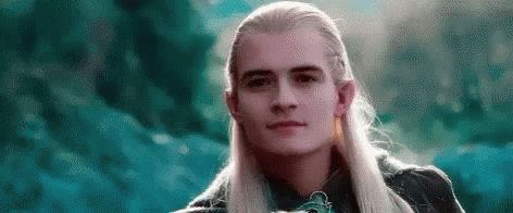 Legolas, the elven prince from Lord of the Rings, gives a gentle, captivating smile.