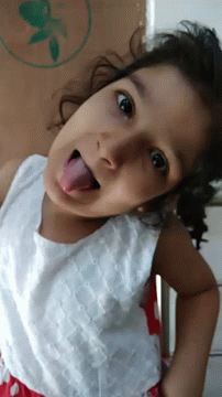 Lele Hamnah makes a funny face, sticking her tongue out and wiggling her ears playfully for the camera.