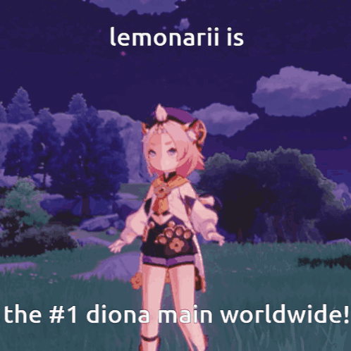 a cartoon of a girl with a cat tail and the words lemonarii is the # 1 diona main worldwide