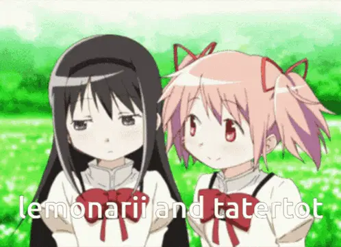 Five anime girls from Madoka Magica standing in a field, with the text 'the women lovers gc'.