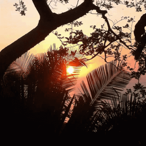 A serene tropical sunset transitions to an advertisement for t-shirts with pricing details.