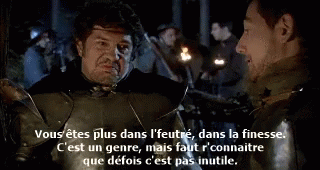 Leodagan, a character from Kaamelott, discusses the concept of finesse with another man.