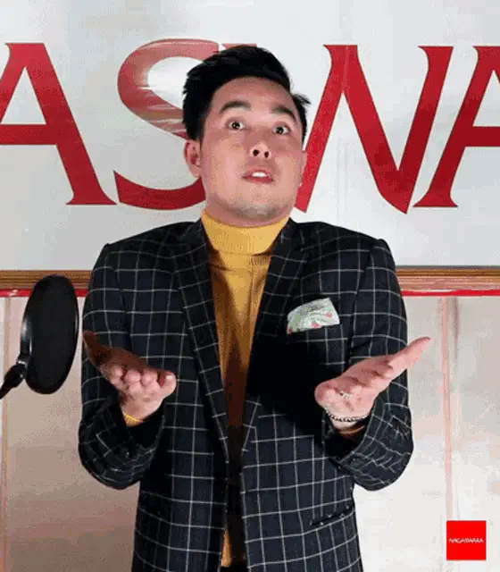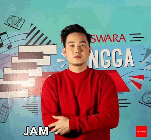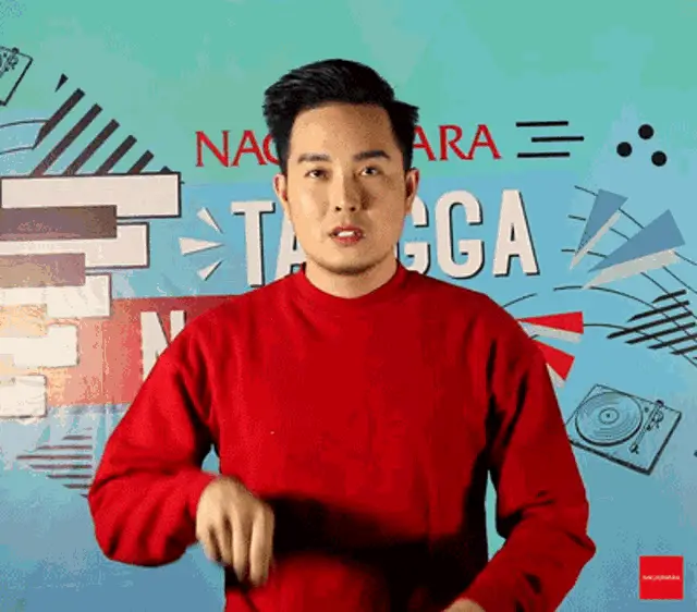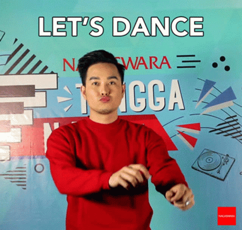 Keizo in a red sweater dances to 'Let's Dance, It's Friday!' with a vibrant Nagaswara background.