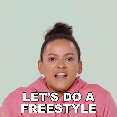 Zindzi Okenyo, wearing a pink hoodie, enthusiastically says 'Let's Do A Freestyle'.