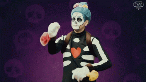 Dani in a detailed Brawloween Rosa cosplay from Brawl Stars, featuring a skeleton design and boxing gloves.