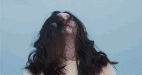 A terrifying female ghost from the Thai drama 'Lets Fight Ghost' with a scary face and glowing eyes.