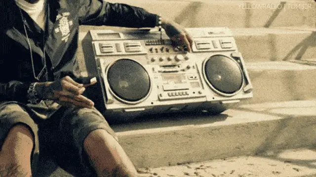 A man holds a boombox on a bus, creating a party atmosphere with friends in a scene from Small Axe.
