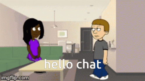Lewellen and another character from GoAnimate are featured with the caption "hello chat" in this animated clip.