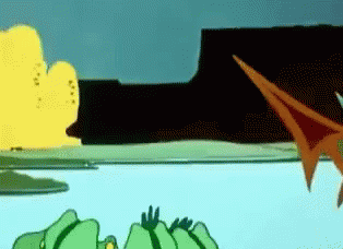 Animated frogs from Soyuzmultfilm, one falling and others gathered, in a classic Soviet cartoon.