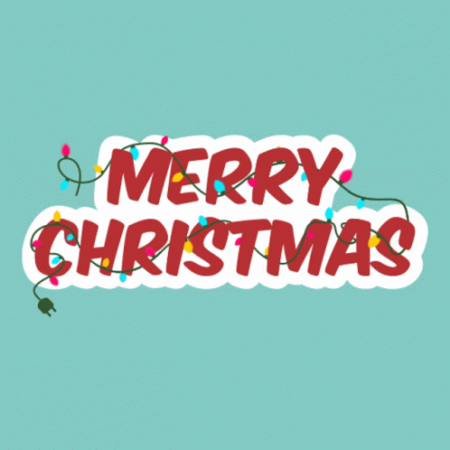 A festive graphic displaying 'Merry Christmas' text adorned with colorful fairy lights.