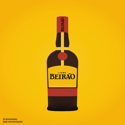 An advertisement for Licor Beirão, featuring the bottle and confetti with the slogan "Cheio de Alegria."