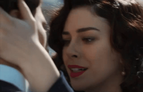 Lidia Aguilar and Carlos Cifuentes share a tender, intimate moment, with Lidia's hand gently caressing Carlos's face.