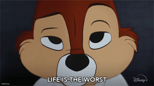 Chip from Chip 'n Dale Rescue Rangers expresses his despair, stating 'Life is the worst' in a Disney+ ad.
