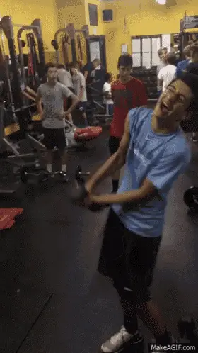 A man wearing headphones performs a heavy deadlift with a barbell in a gym.
