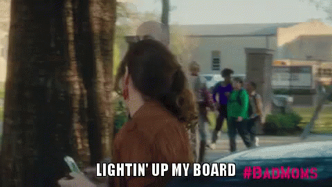 A woman from the movie Bad Moms walks down a street with the caption "Lightin' Up My Board" displayed.