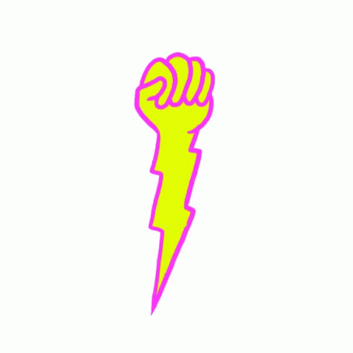 Animated graphic of a yellow fist with a magenta outline and a lightning bolt extending downwards.