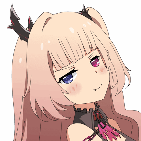 Lilibel, the character from Pixela-Mystic, playfully raises an eyebrow, showing her unique pink and blue eyes.