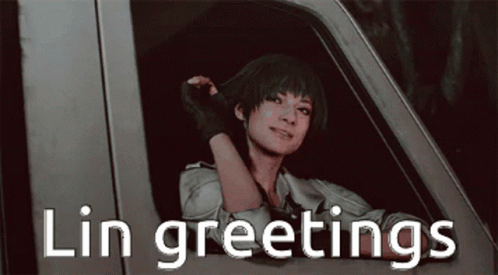 Lin waves from a car window, with the text 'Lin greetings' displayed below her.