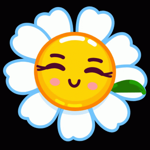 Lina Daisy, a cute cartoon flower, blinks and smiles happily with white petals and a bright yellow face.