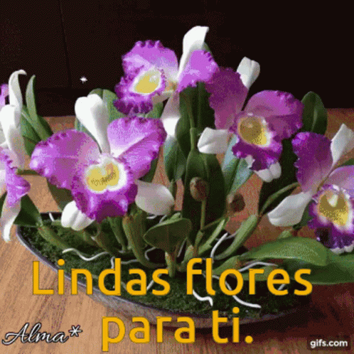 A beautiful collection of orchids and flowers, with the message 'Lindas flores para ti' (Beautiful flowers for you).