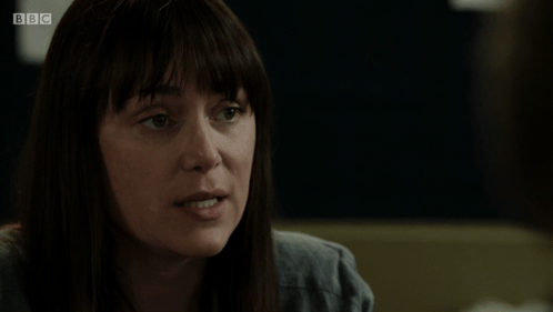 a woman in a dark room with bbc written on the bottom left
