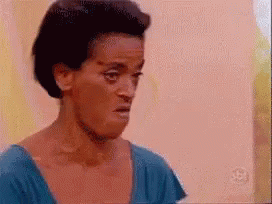 Lingua Una making a funny face with her mouth open, wearing a blue shirt, likely from a show.