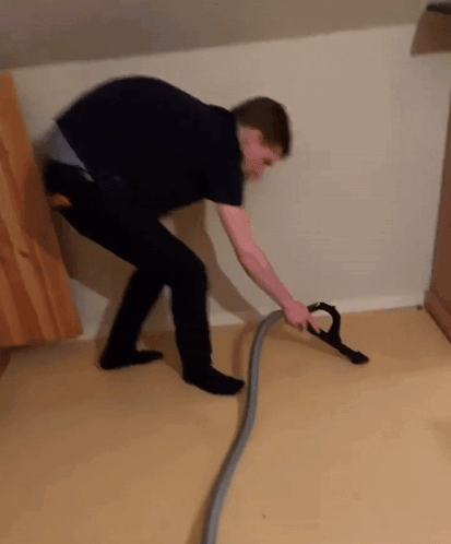 Lionel, possibly Elliot Kervyn Verstraelen, diligently vacuums the floor in a room.