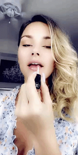 A woman applies Chanel lipgloss, showcasing her beauty and glamour.
