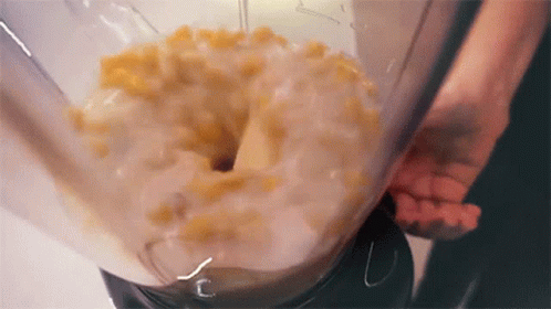 Mariana Fulfaro from Manual Do Mundo blends corn and milk in a blender for a recipe.