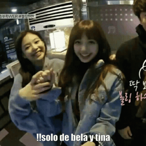 Lisa Manoban and Jennie Kim (Bela and Tina) share a warm hug and smiles, captured in a joyful moment.