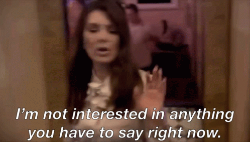 Lisa Vanderpump, with a dismissive expression, states she's not interested in anything you have to say right now.