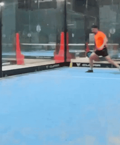 Liscio Blupi attempts a shot during a padel match, resulting in a humorous fail.